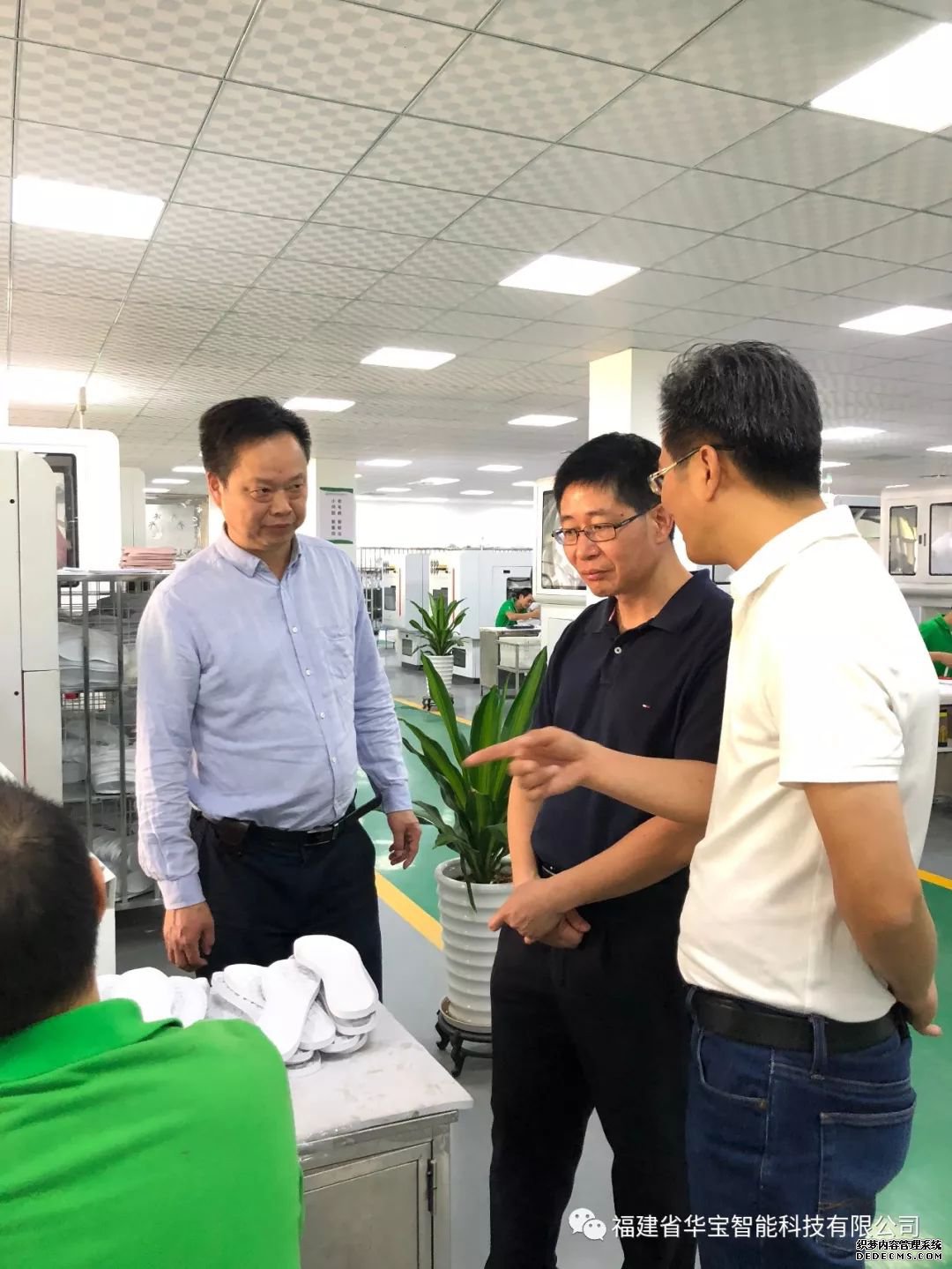 2019年11月13日,福建省工業(yè)和信息化廳副廳長蘭文到訪華寶科技,我司負責人親切接待,陪同蘭副廳長參觀我司制鞋智能應用車間,并匯報了華寶目前各方面的情況。
